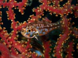 投稿日: 2025年4月19日2025年4月19日 投稿者: finhouse2025年4月19日(土) 天気:晴れ 透視度:10m 水温:18℃ 気温:24℃ 水温も上がってきて、海の中はすっかり春っぽくなってきました。 珊瑚の上などにも海藻がいっぱいで、春の海らしい栄養多そうな海になっています(笑) 生物もまだ低水温の子たちがメインですが、よく見るとヒレナガネジリンボウも顔を出していて、これから生物が増えてきそうですね(^O^) ヒレナガネジリンボウ イナズマヒカリイシモチ 綺麗なピンクのイソギンチャクとクマノミ オオモンカエルアンコウとオトヒメエビ アヤトリカクレエビのトリオ